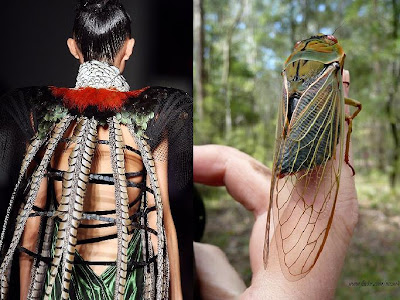 The ways in which big fashion names draw influence from the natural world are diverse and relentless. On Trend de la Creme the curator has made numerous keen eyed comparisons between a seasonal catwalk collection with certain branches of Kingdom Animalia. I selected some of the more striking or unusual similarities below but there are many more on the previously mentioned blog.